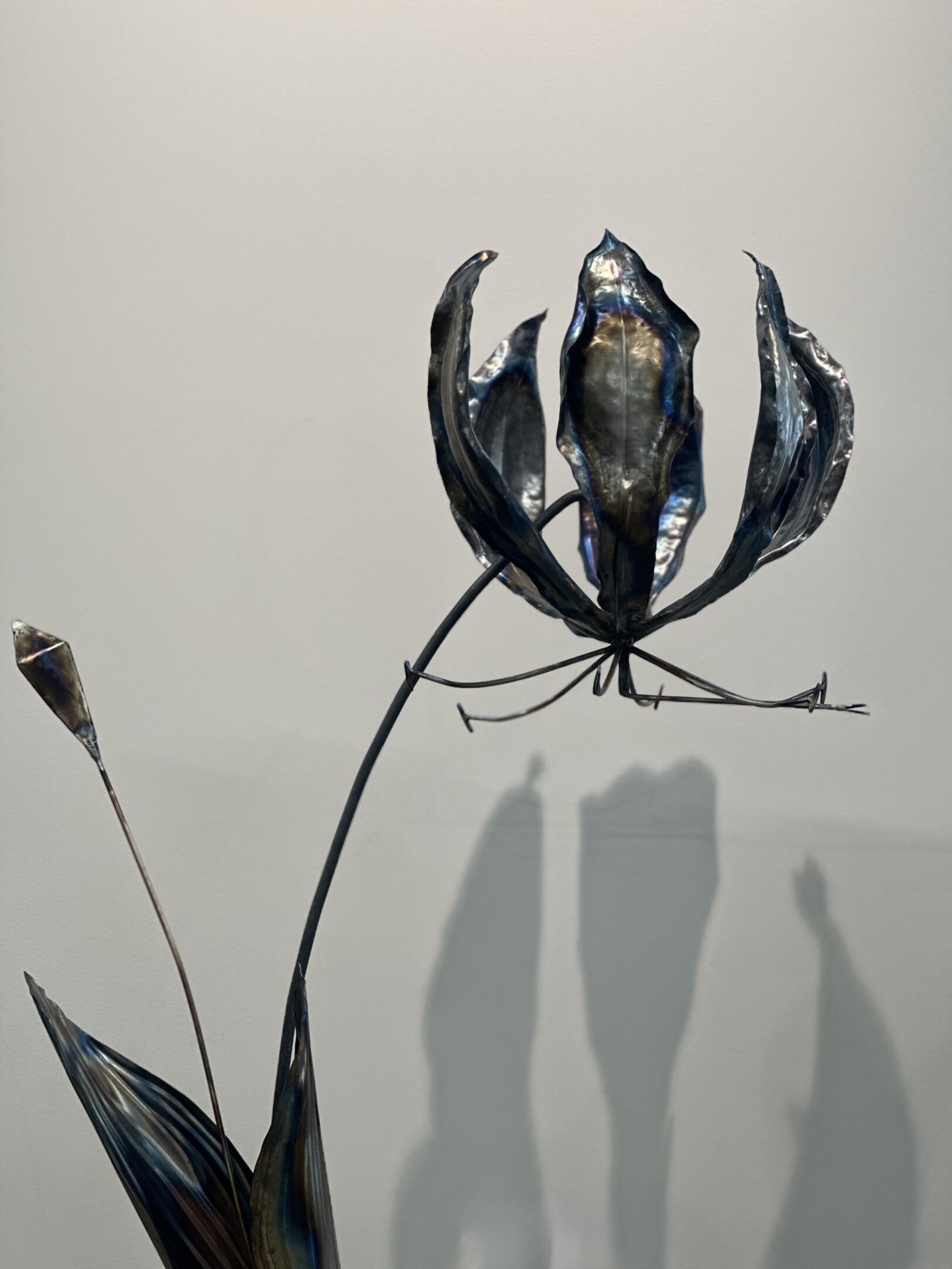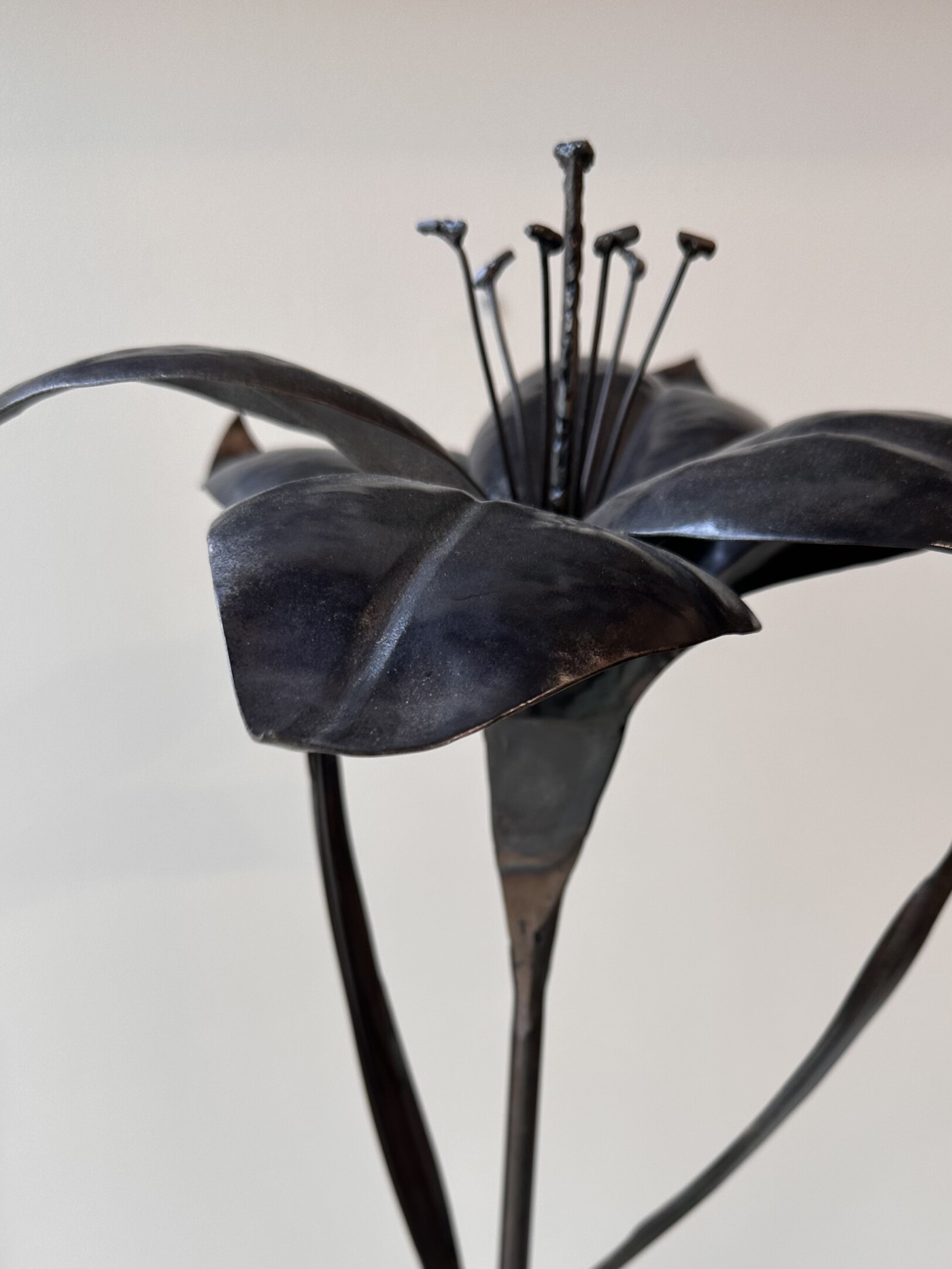 Since I started working with metal I have been fascinated by this versatile material. To create subtle and vulnerable things like flowers from a hard, cold material that can only be shaped with force and heat is a captivating process. I research the anatomy of a flower extensively before I make it out of metal, to create life-like, much bigger versions.