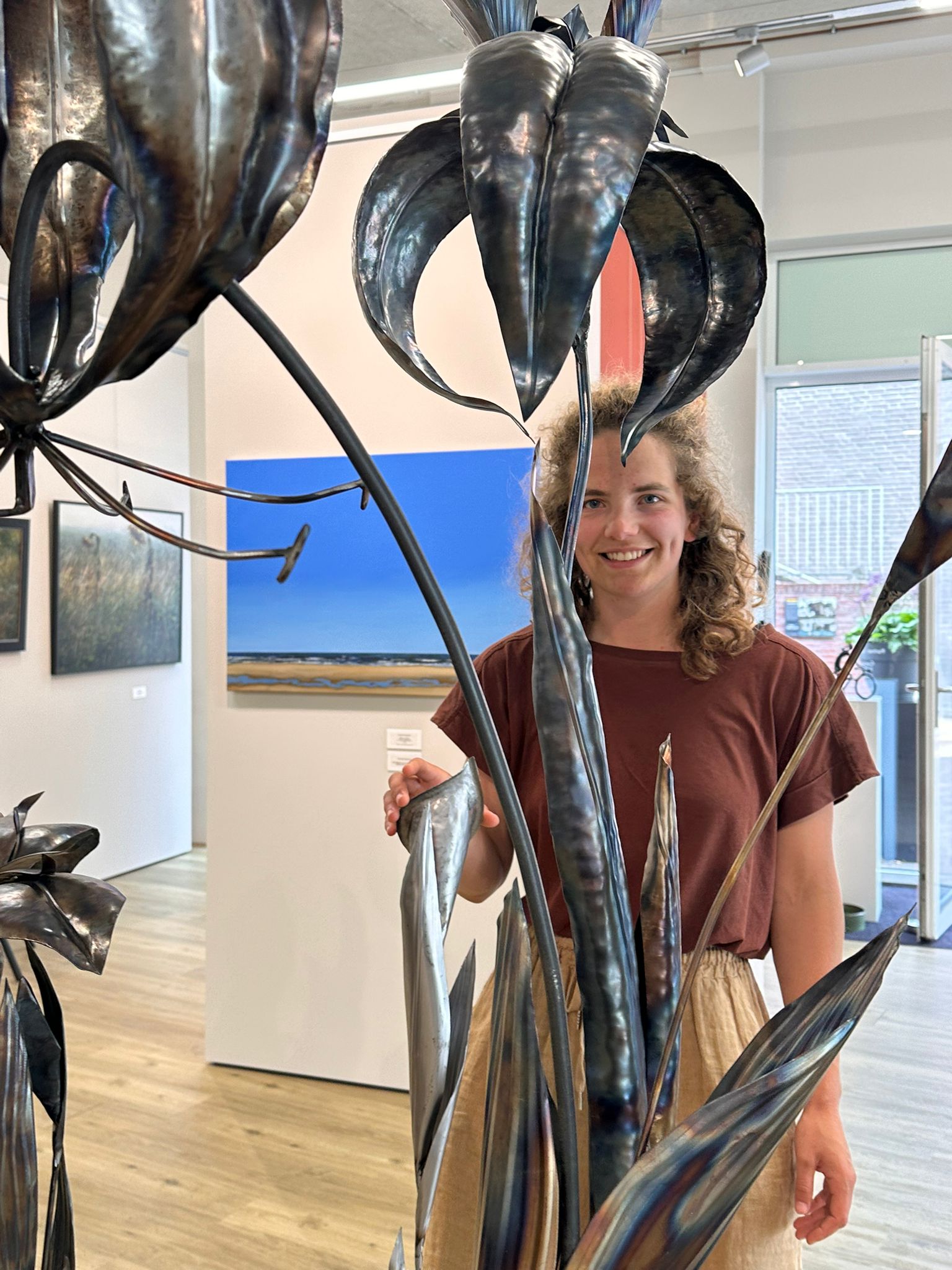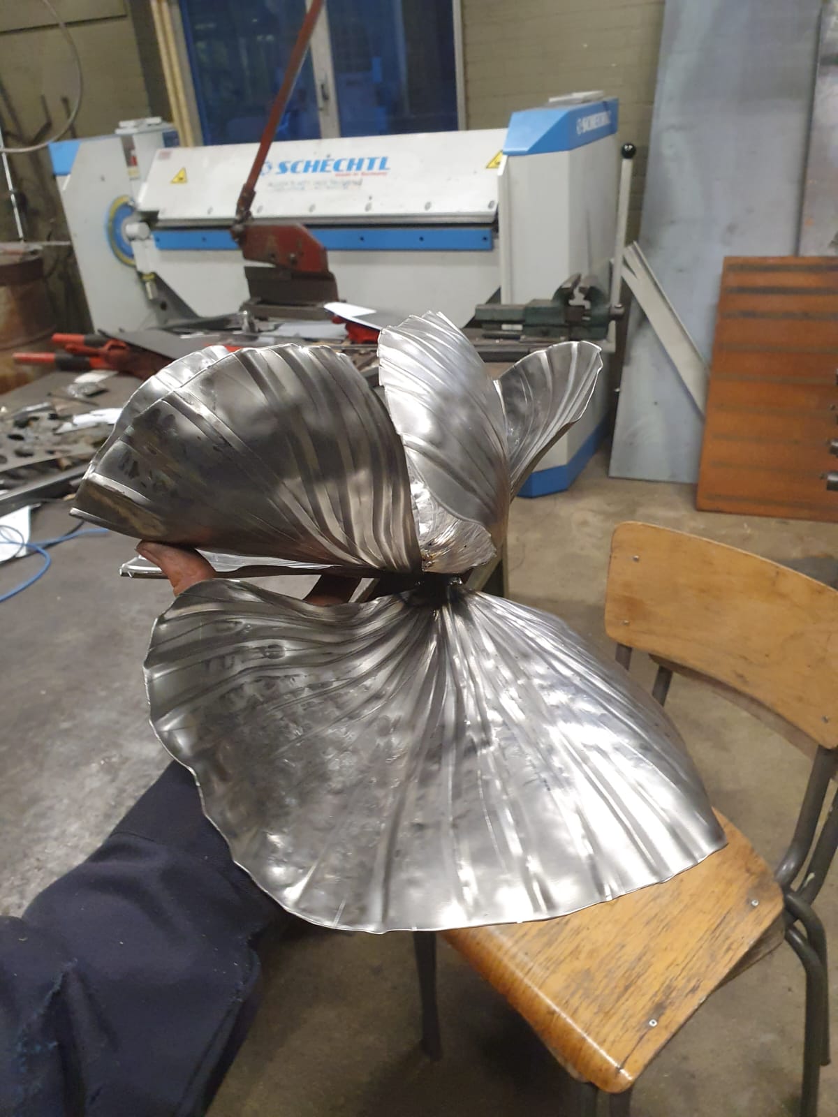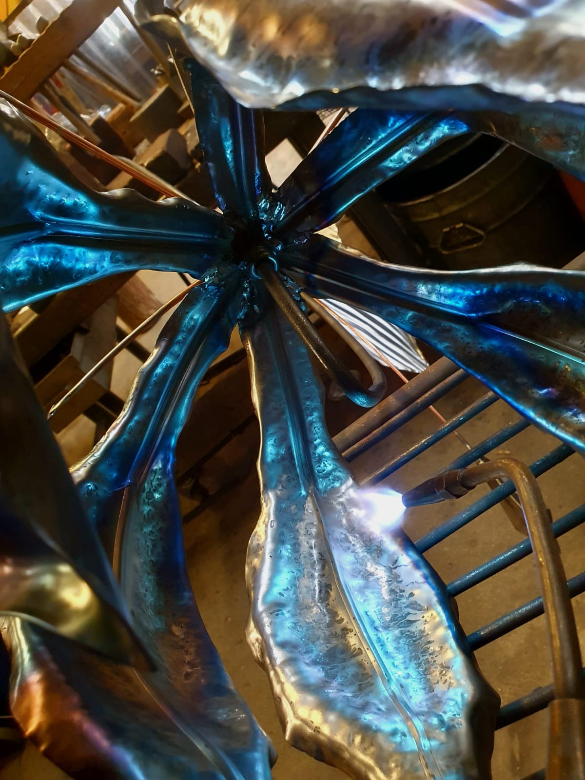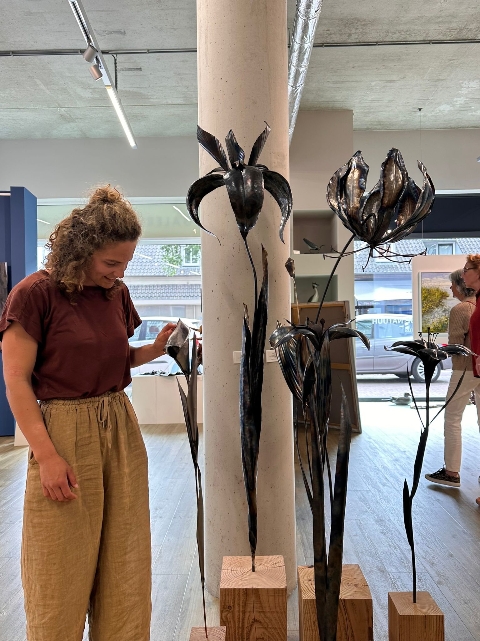 Since I started working with metal I have been fascinated by this versatile material. To create subtle and vulnerable things like flowers from a hard, cold material that can only be shaped with force and heat is a captivating process. I research the anatomy of a flower extensively before I make it out of metal, to create life-like, much bigger versions.