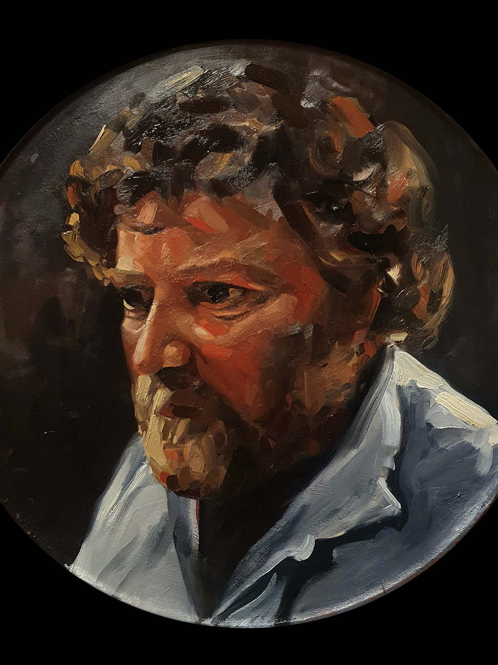 Job, 30x30cm circle, oil on panel